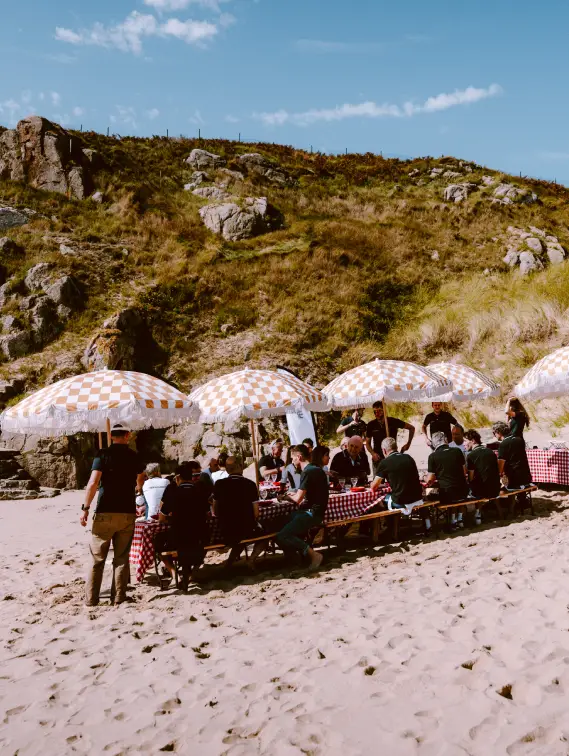Après une courte traversée en bateau, nous avons jeté l’ancre sur l’île de Cézembre pour une pause déjeuner face à la baie de Saint-Malo. Installés les pieds dans le sable, nous avons savouré une sélection de produits locaux, le tout bercé par le murmure des vagues.
